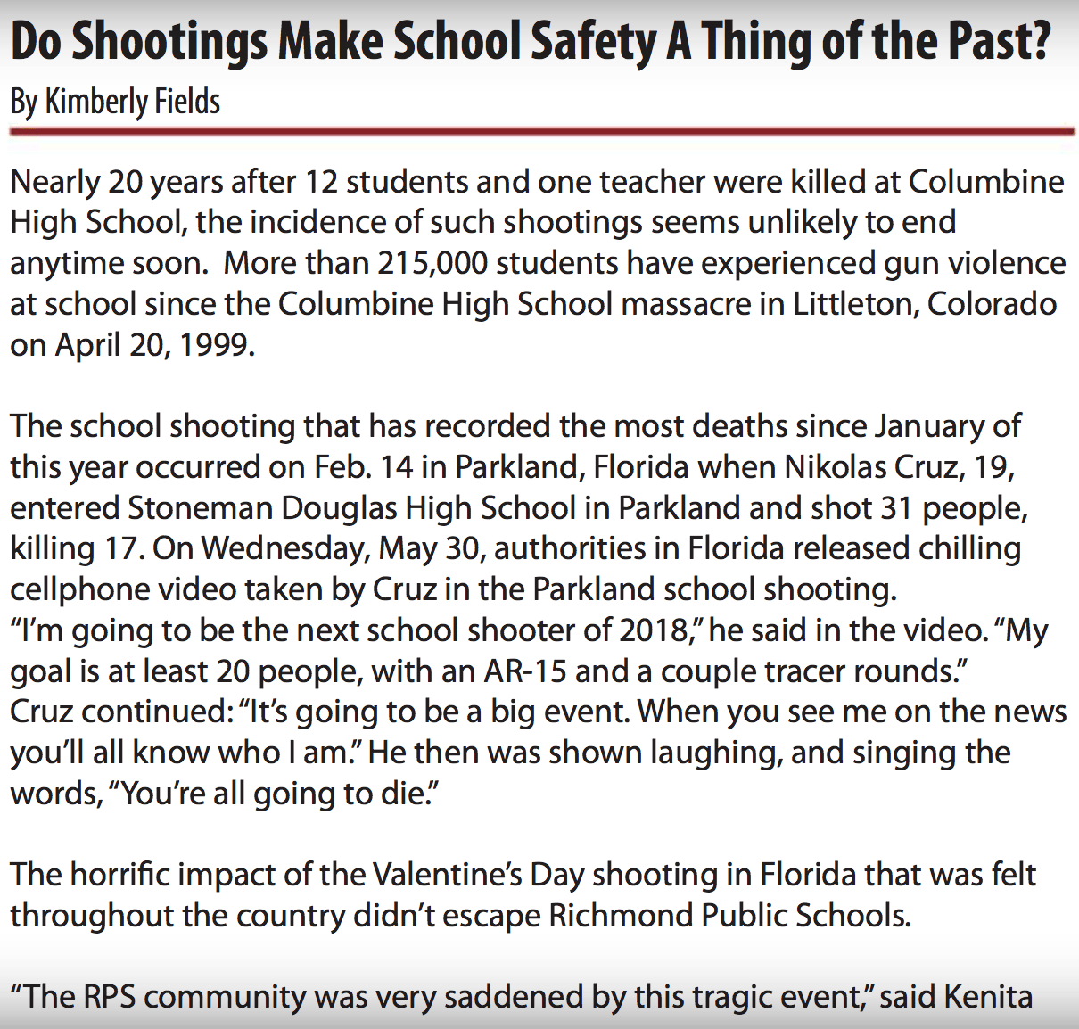 “Kimberly Fields has quickly become a recognized and respected journalist and media professional. Her ability to analyze, synthesize, think and write while juggling several assignments is impressive. I know that I can depend on her to deliver a quality product. She has yet to disappoint me.”